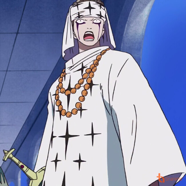 This is a picture of Pell, the fictional character who is the Commander of the Alabasta Royal Army along with Chaka and nicknamed "Pell the Falcon" in the One Piece manga. Pell is a tall man with a purple line under each eye running along the sides of his face, giving him the appearance of a falcon.
