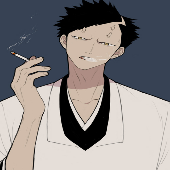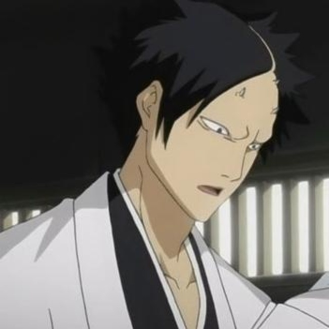This is a picture of Akon, a fictional character, the current vice-captain of Team 12, vice-president of the Shinigami Research and Development Institute in the manga Bleach. Akon is a tall man with short, jet-black hair, flared at the sides, with a long hairline. He has three small horns protruding from his forehead and lacks eyebrows.